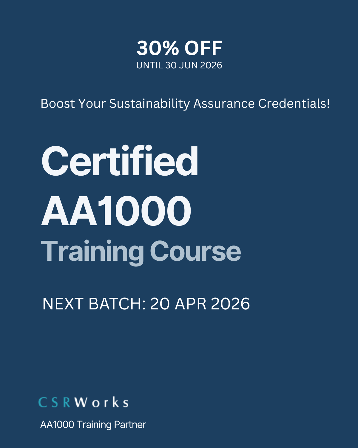 Upon successful completion of the training course, participants receive a Certificate of Completion directly from GRI. Participants can also opt to sign up for the full GRI Certified Sustainability Professional Course with us.