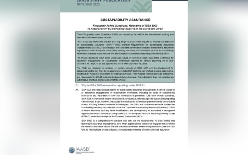The FAQs aim to enhance users’ confidence in sustainability information prepared under the European Sustainability Reporting Standards (ESRS) and to clarify the standard’s relevance to assurance engagements required by the Corporate Sustainability Reporting Directive (CSRD).