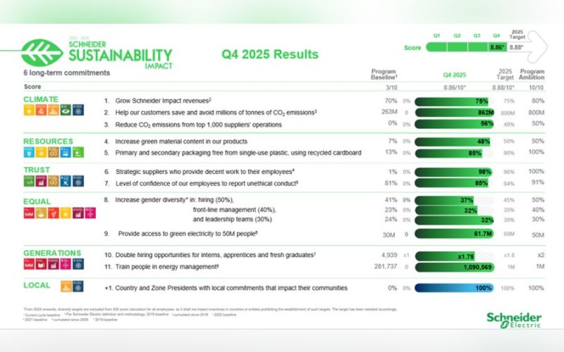 Schneider Electric said its technologies and solutions helped customers save and avoid 862 million tonnes of CO₂ emissions by the end of 2025, exceeding its original target of 800 million tonnes.